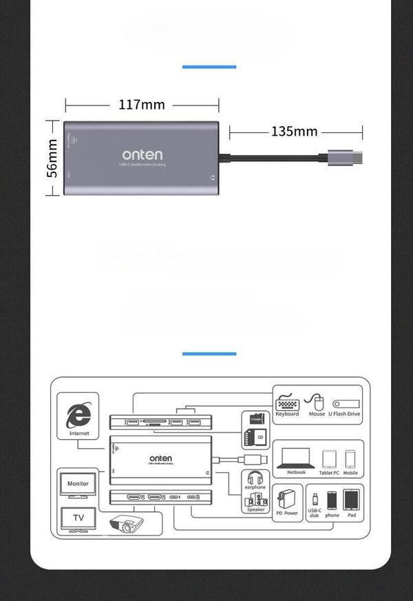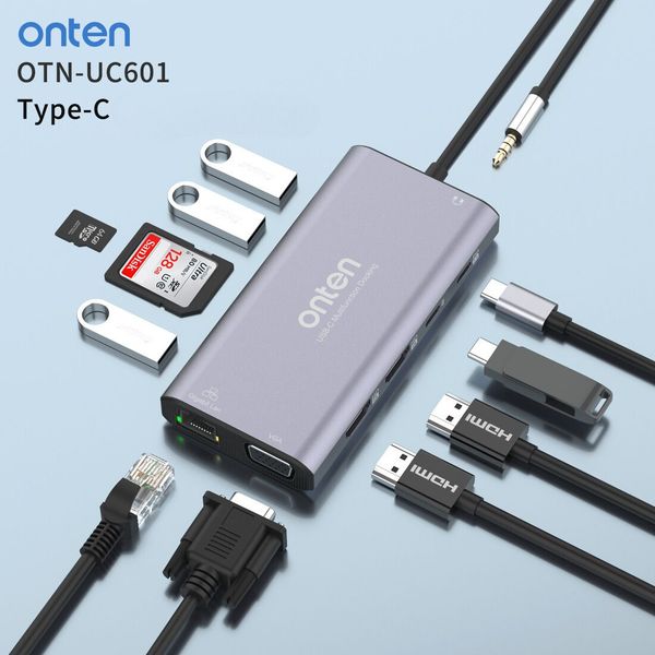 ONTEN UC601 Type C Hub 12in1 for MacBook HDMI VGA RJ45 SD Card Reader 3.5mm Jack