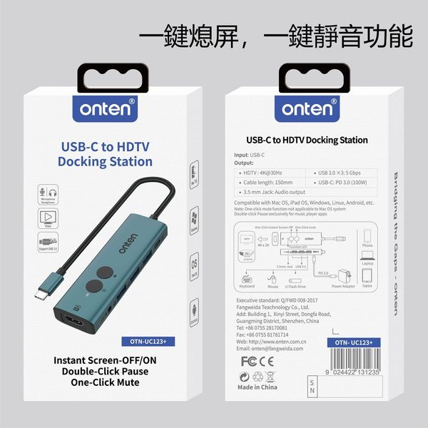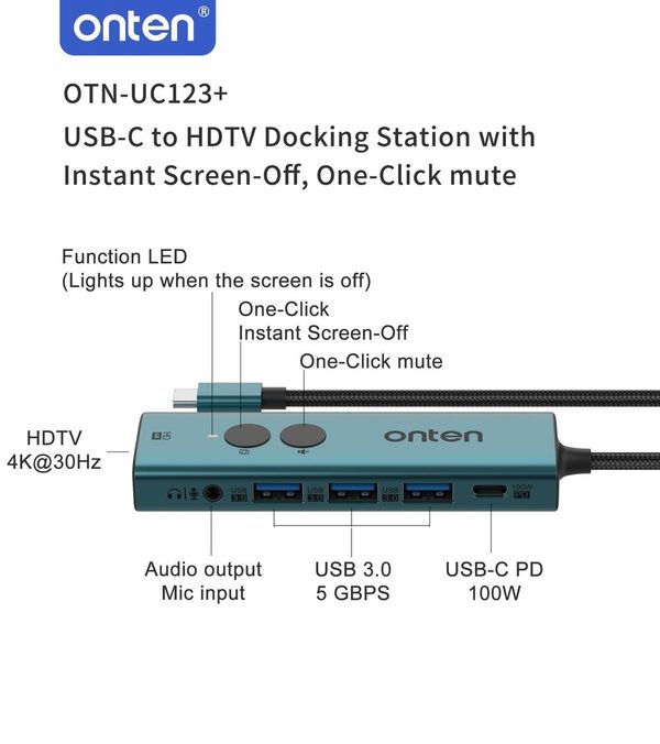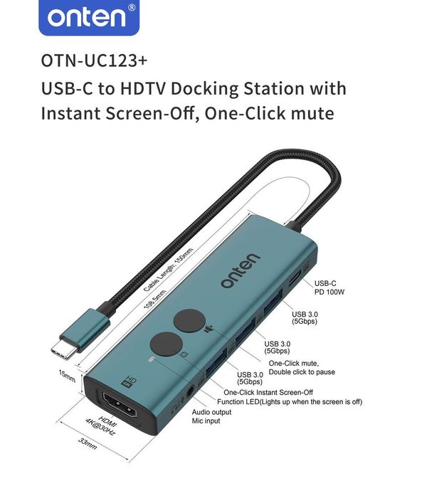 5. Interface:USB-C x 1, HDMI (4K 30Hz) ,USB 3.0 x 1, USB 2.0 x 2, USB-C x 1 (5V input), 3.5mm interface x 1