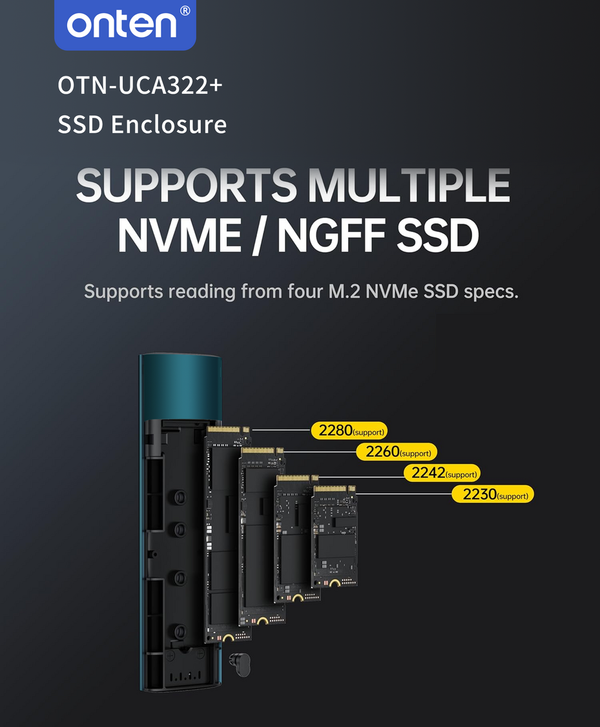 Onten UCA322+ SSD Enclosure (Support NVMe and NGFF)
