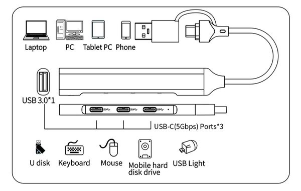 ◆ Output:USB 3.0*1、USB-C(5Gpbs)*3